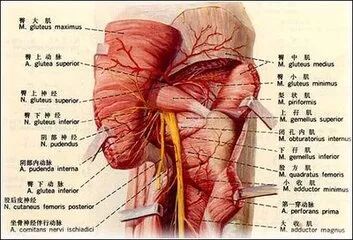 梨状肌为臀部深层的一块形似梨形的小肌肉。它起于盆内骶骨前面2、3、4骶前孔的外侧,向外下穿过坐骨大孔到臀部,以肌腱止于股骨大粗隆后内侧,是髋关节的外旋肌。梨状肌受第1~2骶神经支配,其上方有臀上血管穿出,下方有臀下血管及神经穿出,而坐骨神经就在其稍外侧痛过。由于梨状肌在臀部深层与坐骨神经干紧密相邻的特殊关系,再加解剖上的变异,容易损伤,导致疼痛、麻痹。
