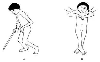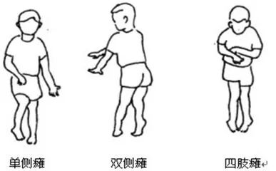 痉挛性瘫痪表现为双下肢肌张力增高,腱反射活跃亢进,病理反射阳性,呈剪刀步态。